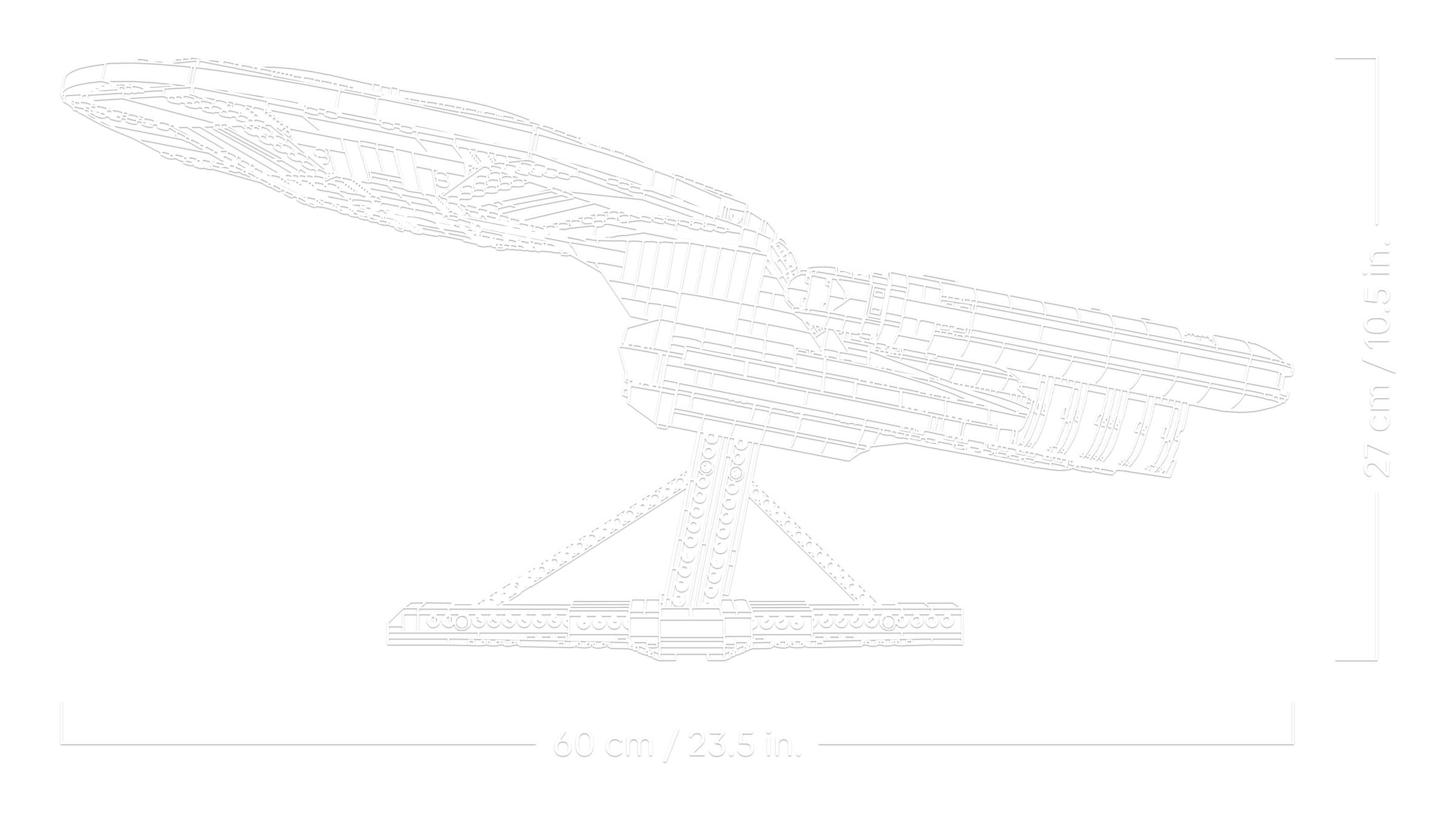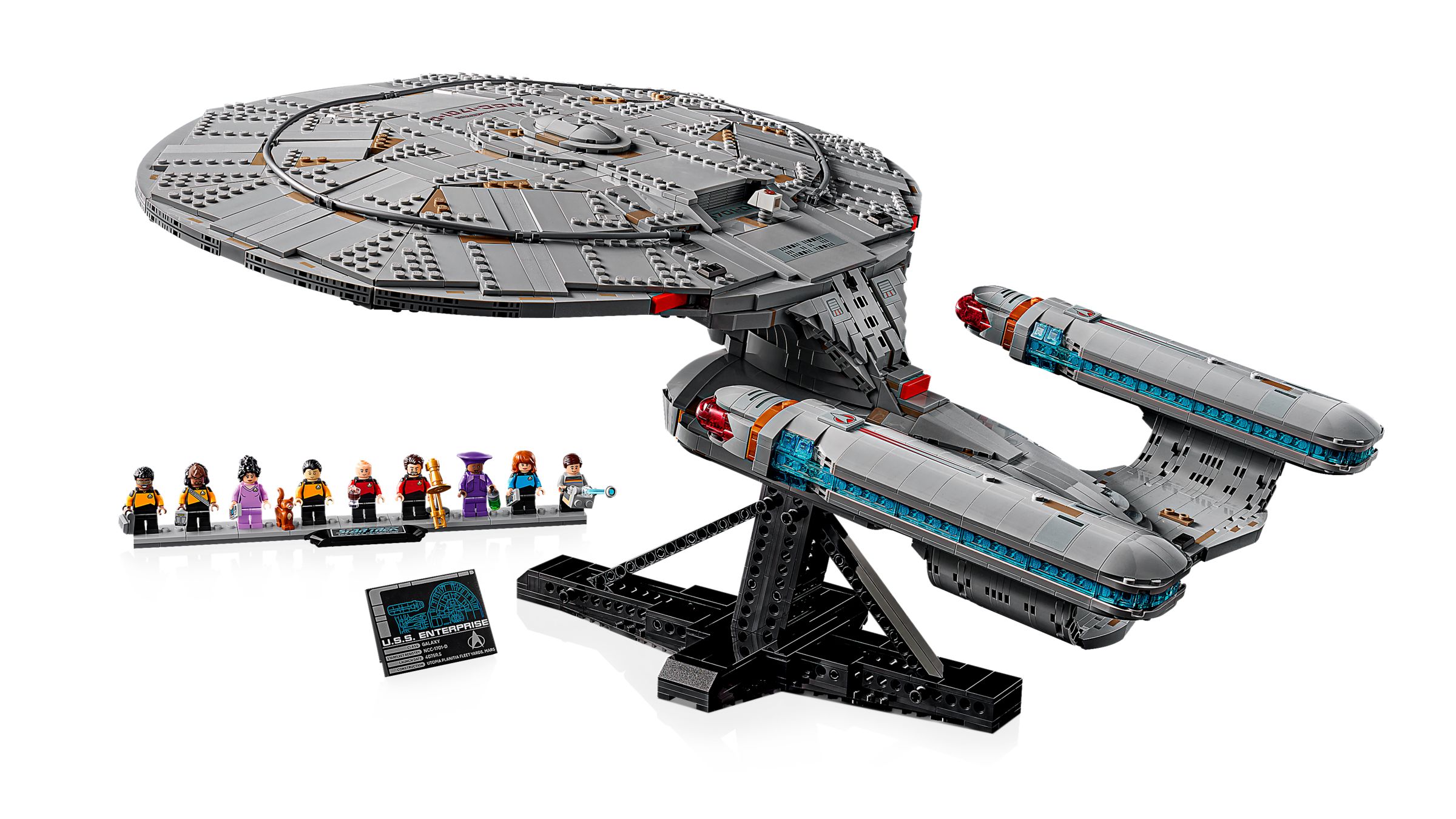 Die legendäre U.S.S. Enterprise NCC-1701-D lässt sich hier mit abnehmbarer Kommando-Untertasse, aufklappbarem Shuttleschiff-Hangar, zwei Mini-Shuttlepods und einem Ständer mit technischen Daten des Raumschiffs nachbauen – komplett mit 9 Minifiguren der Next-Generation-Crew, darunter Captain Picard, Commander Riker und Lieutenant Worf. Der Bausatz umfasst 3.600 Teile, ist für Erwachsene ab 18 Jahren konzipiert und braucht rund neun Stunden bis zur Fertigstellung.