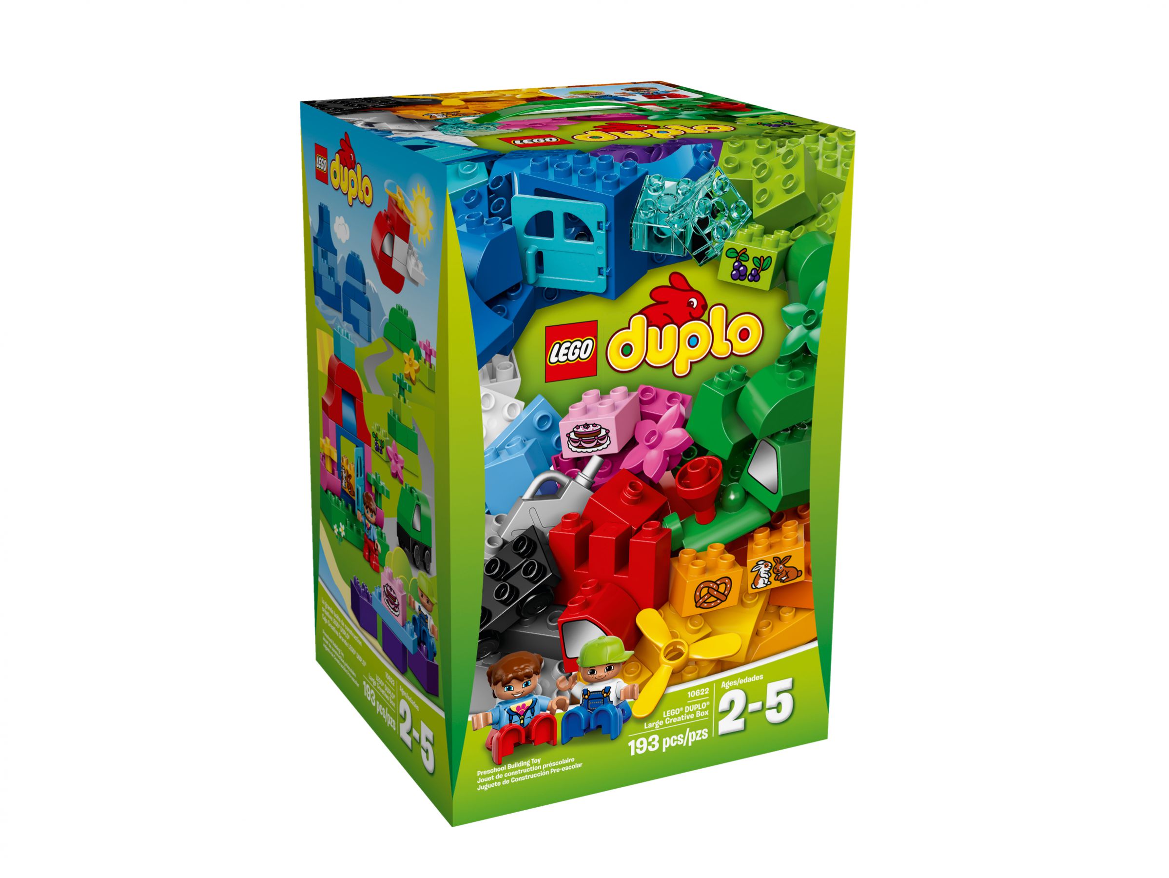 Das LEGO Set LEGO® DUPLO Große Kreativ-Steinebox mit der LEGO-Nummer 10622 LEGO® DUPLO® Large Creative Box gehört zur Themenreihe LEGO DUPLO. Altersempfehlung: 2-5 Jahre. Dieser LEGO Baukasten ist 2015 erschienen und ist seit Ende Dezember 2016 offiziell aus dem LEGO-Programm (EOL = End of Life). Das Set enthält 2 Minifiguren. Das Modell besteht aus 193 Teilen. Die Bauzeit beträgt weniger als eine Stunde. Die LEGO-Box wiegt insgesamt ca. 1.990 Gramm. Die unverbindliche Preisempfehlung (UVP) liegt bei 59,99 €.