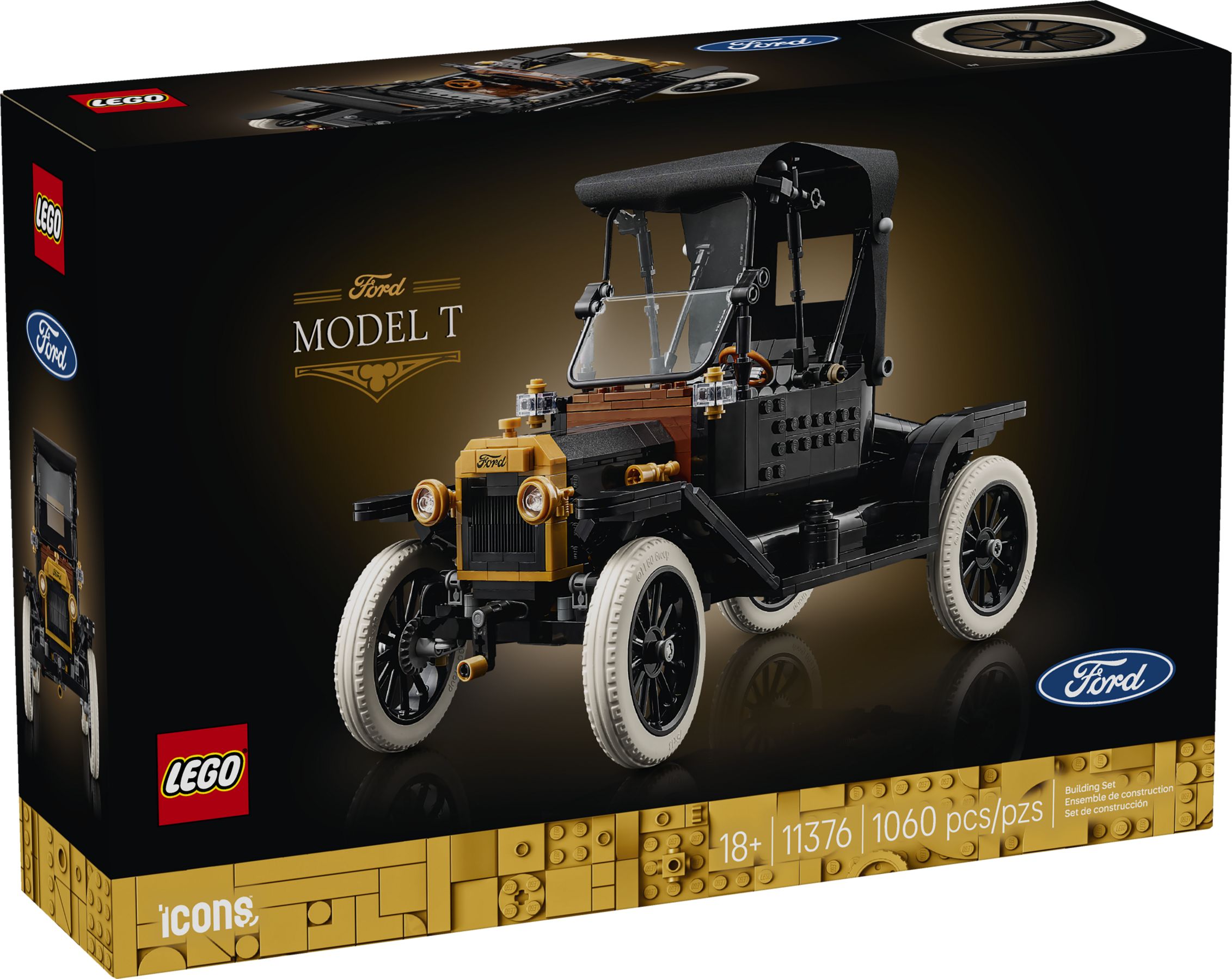 Das LEGO Set Ford Model T mit der LEGO-Nummer 11376 gehört zur Themenreihe LEGO ICONS. Altersempfehlung: 18+ Jahre. Dieser LEGO Baukasten ist 2026 erschienen und wird vermutlich bis 2028 im Programm bleiben. Das Modell besteht aus 1060 Teilen. Die Bauzeit beträgt ca. 2 bis 3 Stunden. Die Teile des Sets ohne Anleitung und Box wiegen ca. 825 Gramm. Die LEGO-Box wiegt insgesamt ca. 1.345 Gramm. Die unverbindliche Preisempfehlung (UVP) liegt bei 129,99 €.