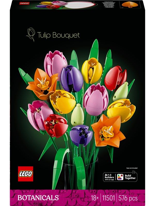 Das LEGO Set Tulpenstrauß mit der LEGO-Nummer 11501 Tulip Bouquet gehört zur Themenreihe LEGO BOTANICALS. Altersempfehlung: 18+ Jahre. Dieser LEGO Baukasten ist 2026 erschienen und wird vermutlich bis 2028 im Programm bleiben. Das Modell besteht aus 576 Teilen. Die Bauzeit beträgt ca. 1 bis 2 Stunden. Die Teile des Sets ohne Anleitung und Box wiegen ca. 471 Gramm. Die LEGO-Box wiegt insgesamt ca. 762 Gramm. Die unverbindliche Preisempfehlung (UVP) liegt bei 59,99 €.