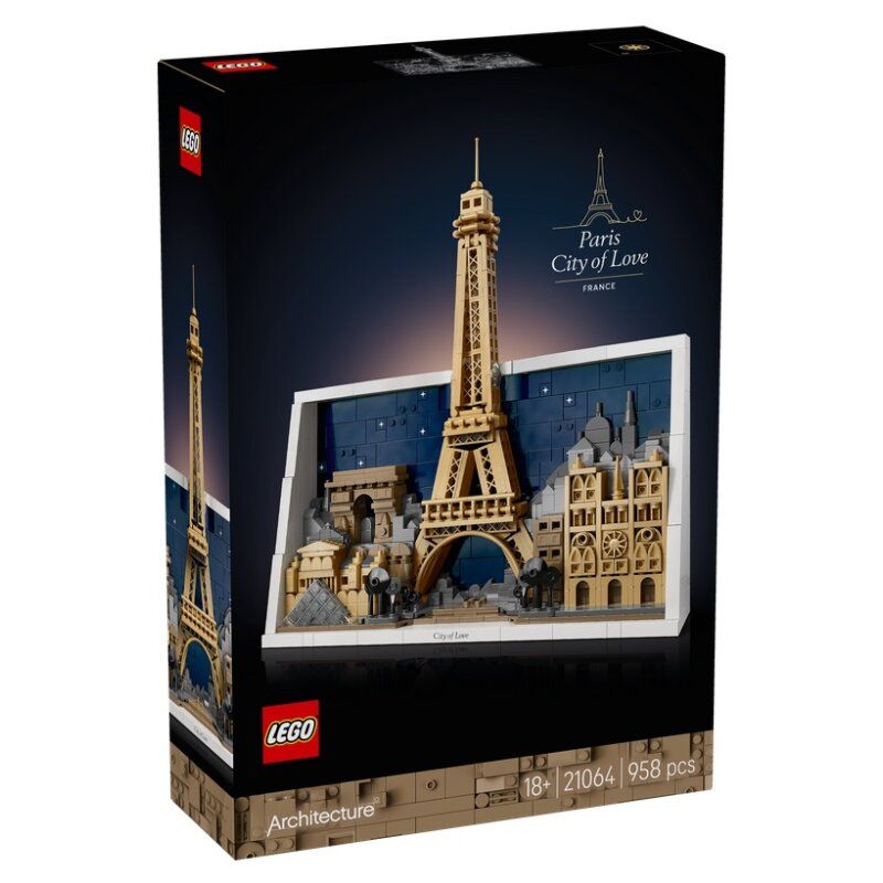Das LEGO Set Paris – Stadt der Liebe mit der LEGO-Nummer 21064 Paris – City of Love gehört zur Themenreihe LEGO ARCHITECTURE. Altersempfehlung: 18+ Jahre. Dieser LEGO Baukasten ist 2026 erschienen und wird vermutlich bis 2028 im Programm bleiben. Das Modell besteht aus 958 Teilen. Die Bauzeit beträgt ca. 2 bis 3 Stunden. Die Teile des Sets ohne Anleitung und Box wiegen ca. 753 Gramm. Die LEGO-Box wiegt insgesamt ca. 1.100 Gramm. Die unverbindliche Preisempfehlung (UVP) liegt bei 79,99 €.