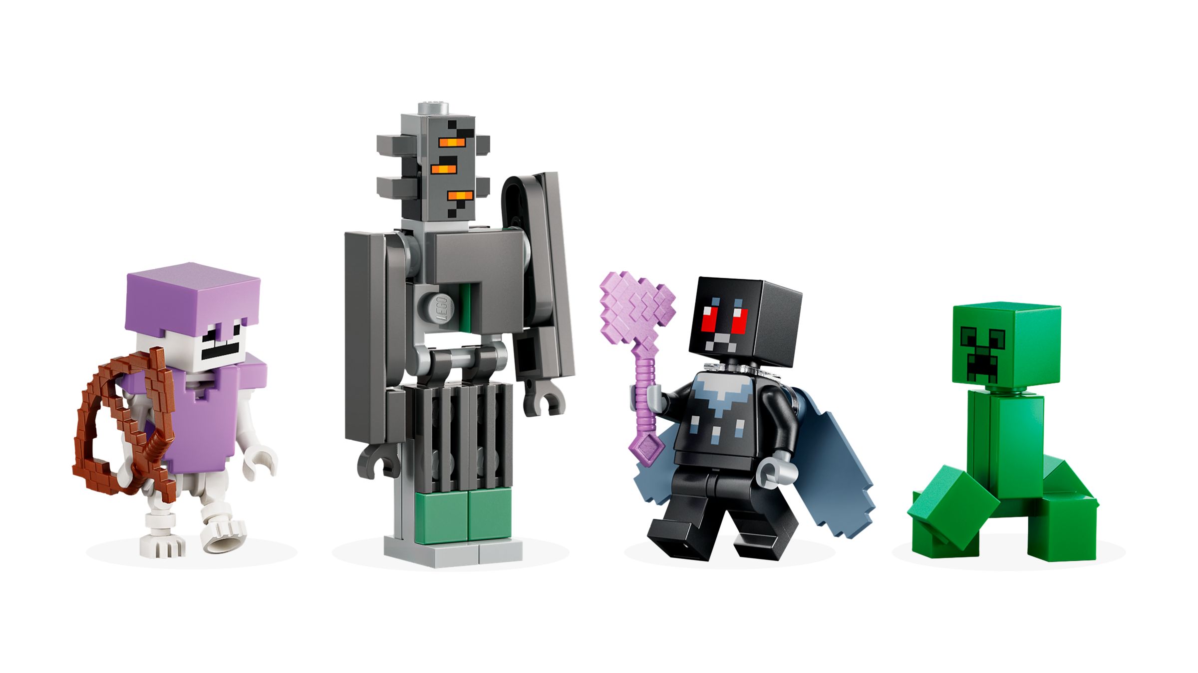 Im Blassen Garten lauert ein Knarz hinter einer moosbedeckten blassen Eiche voller Augenblüten – und wer das versteckte Knarzherz will, muss entweder die Rinde entfernen oder den Zapfen am Stamm drücken. Der Bausatz mit 243 Teilen enthält vier Figuren, darunter einen geflügelten Mottenmann mit verzauberter Axt und ein Skelett in Diamantrüstung, und ist ab 7 Jahren in rund einer Stunde aufgebaut.
