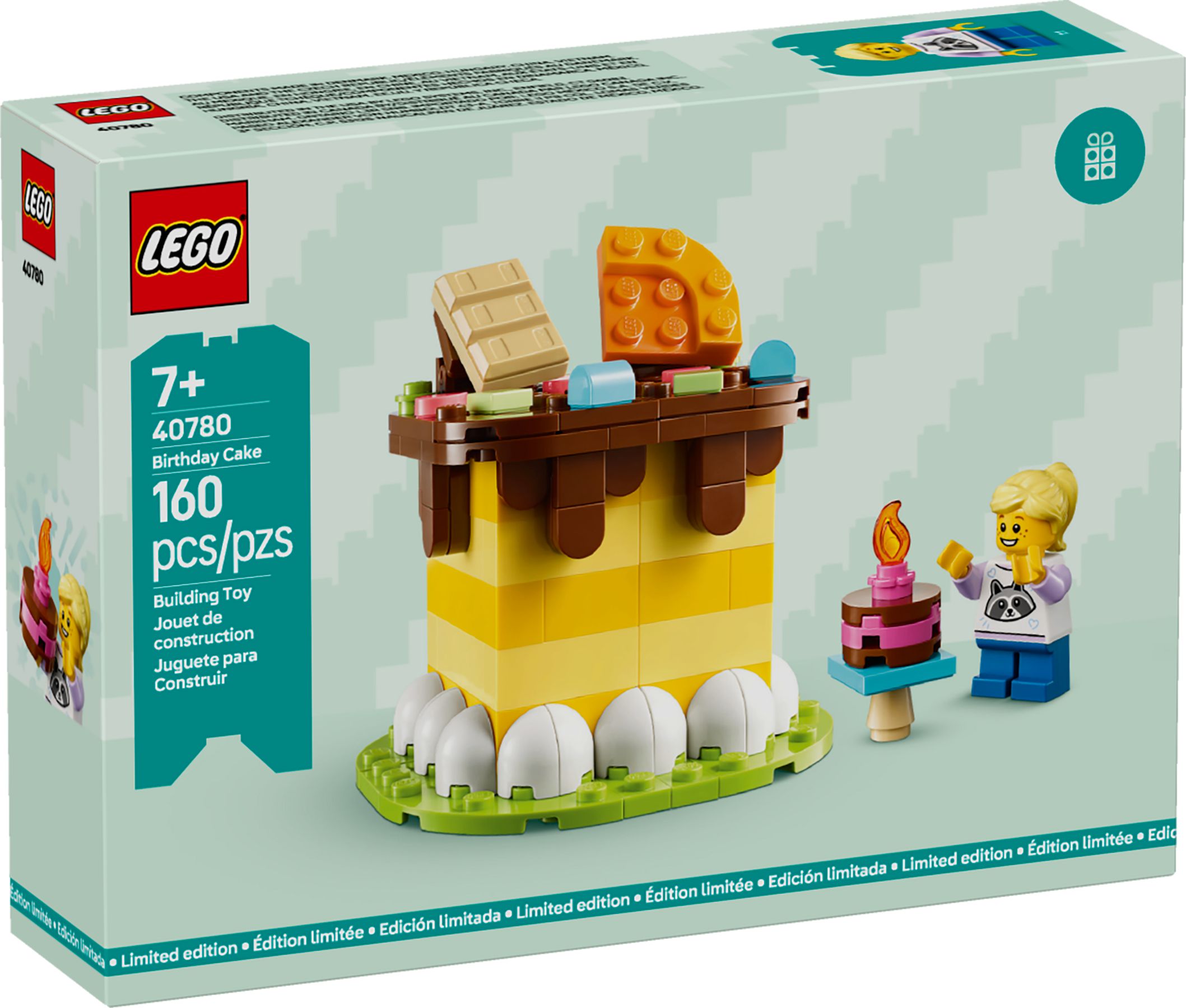 Das LEGO Set Geburtstagstorte mit der LEGO-Nummer 40780 Birthday Cake gehört zur Themenreihe LEGO SEASONAL. Altersempfehlung: 7+ Jahre. Dieser LEGO Baukasten ist 2025 erschienen und ist seit Ende Dezember 2025 offiziell aus dem LEGO-Programm (EOL = End of Life). Das Modell besteht aus 160 Teilen. Die Bauzeit beträgt weniger als eine Stunde. Die LEGO-Box wiegt insgesamt ca. 202 Gramm. Die unverbindliche Preisempfehlung (UVP) liegt bei 12,99 €. Das entspricht 8,12 Cent pro Stein