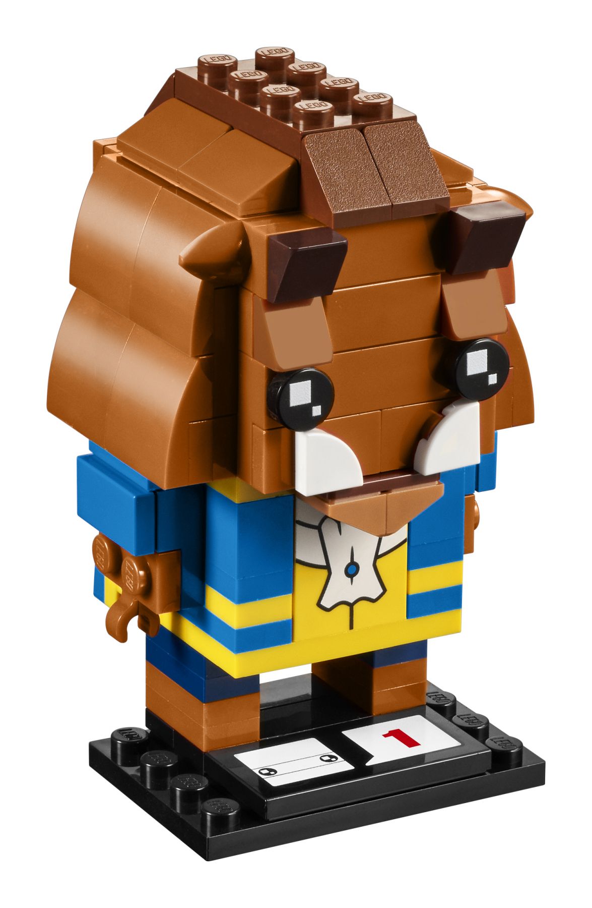 Die neuen LEGO® BrickHeadz Sets, die im Frühjahr 2017 herauskommen, bieten dir eine völlig neue Möglichkeit, die legendären Charaktere aus deinen heiß und innig geliebten Filmen, Fernsehserien, Spielen und Comics zu sammeln, zu bauen und zu zeigen. Es macht großen Spaß, diese BrickHeadz Figur aus bunten LEGO System Steinen zu bauen und all die legendären Details des Biests aus Disneys Zeichentrickklassiker „Die Schöne und das Biest“ nachzubilden, zu denen auch die aufgedruckte Weste, die baubare Mähne und die baubaren Hörner gehören. Auf einer besonders konstruierten Stellplatte lässt sich das Biest einfach präsentieren.