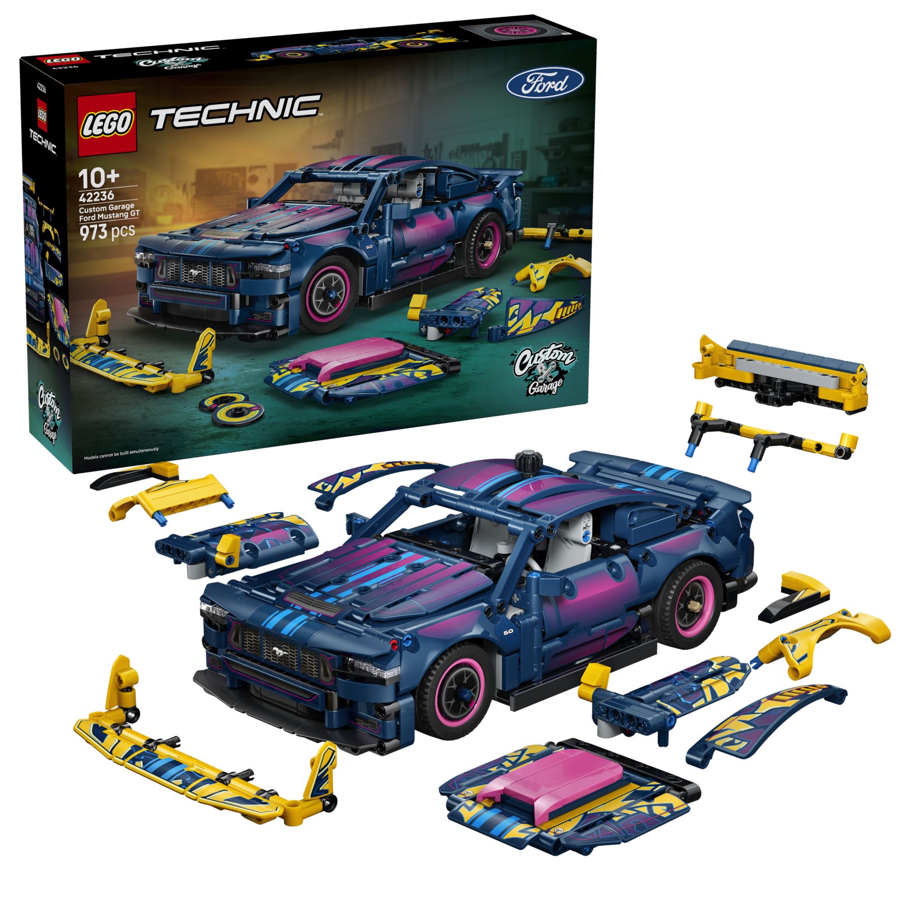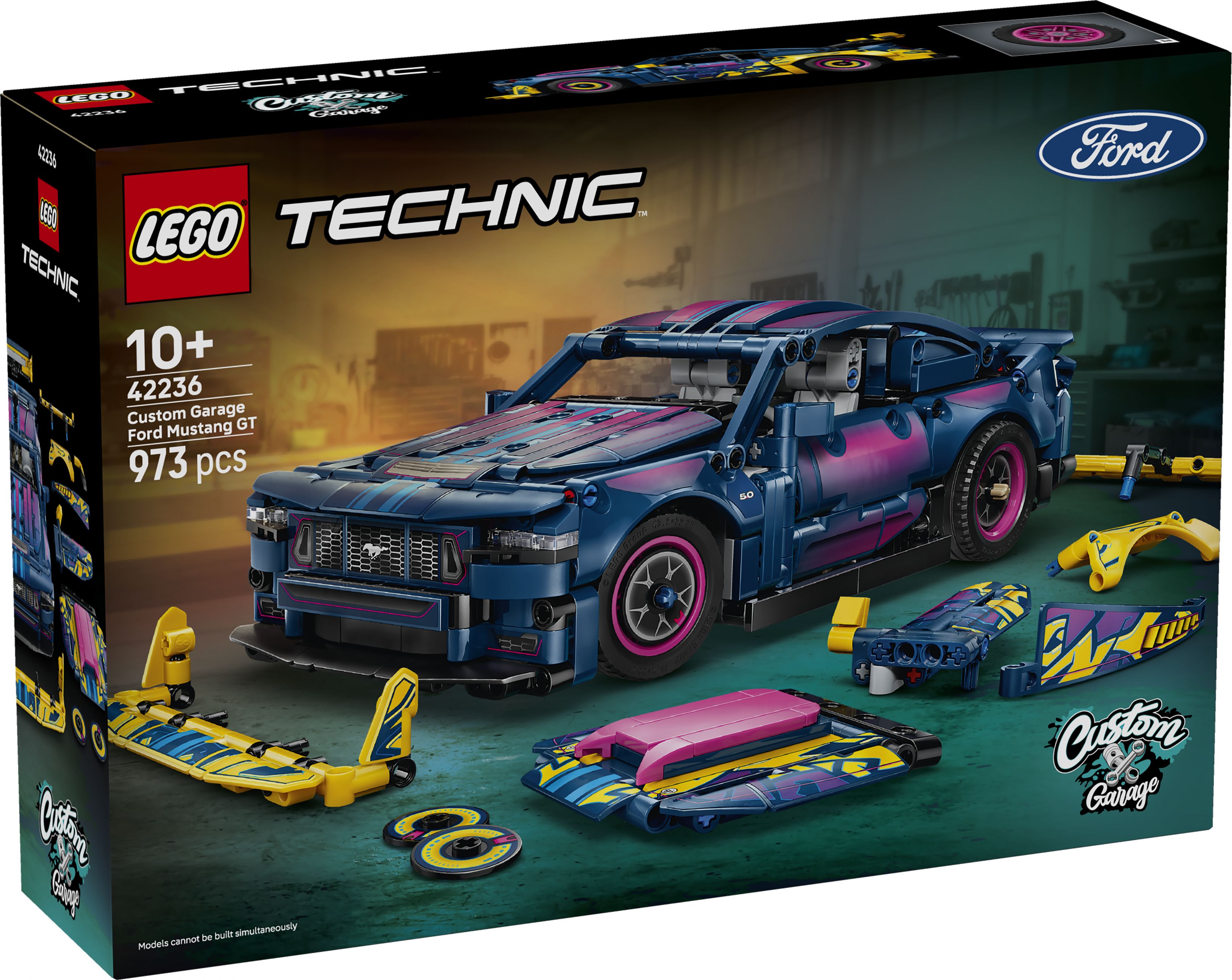 Das LEGO Set Ford Mustang GT Auto aus der Tuning-Werkstatt mit der LEGO-Nummer 42236 Custom Garage Ford Mustang GT Car gehört zur Themenreihe LEGO TECHNIC. Altersempfehlung: 10+ Jahre. Dieser LEGO Baukasten ist 2026 erschienen und wird vermutlich bis 2028 im Programm bleiben. Das Modell besteht aus 973 Teilen. Die Bauzeit beträgt ca. 2 bis 3 Stunden. Die LEGO-Box wiegt insgesamt ca. 1.381 Gramm. Die unverbindliche Preisempfehlung (UVP) liegt bei 89,99 €.