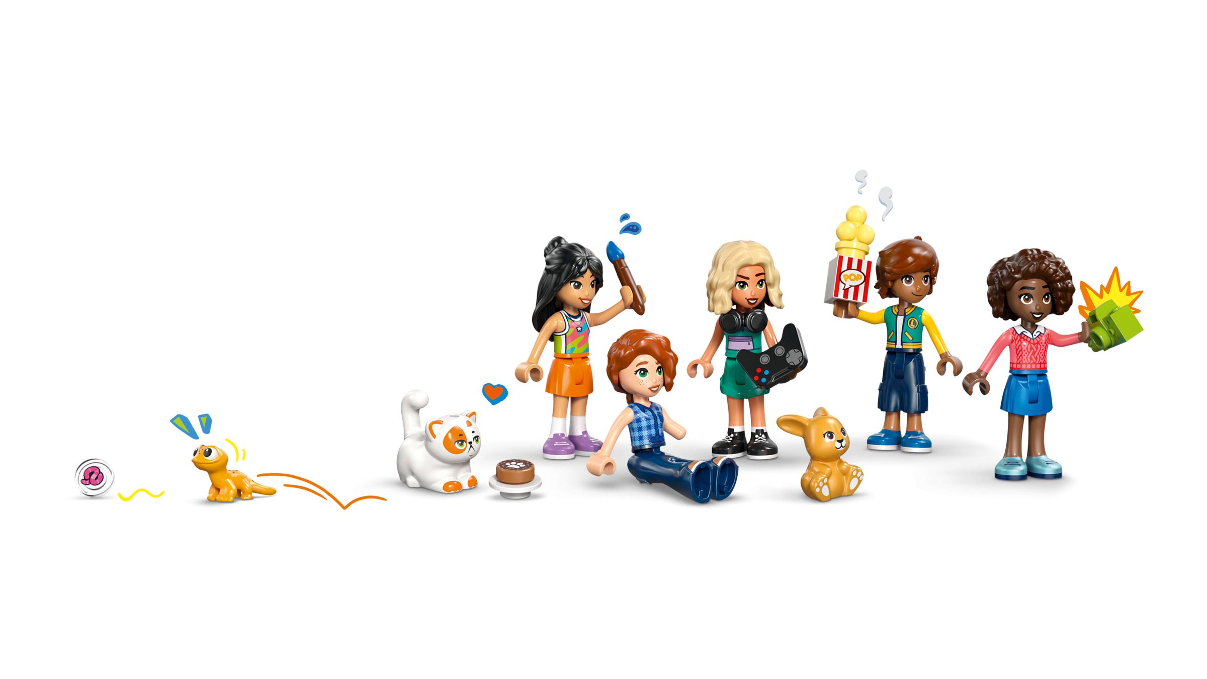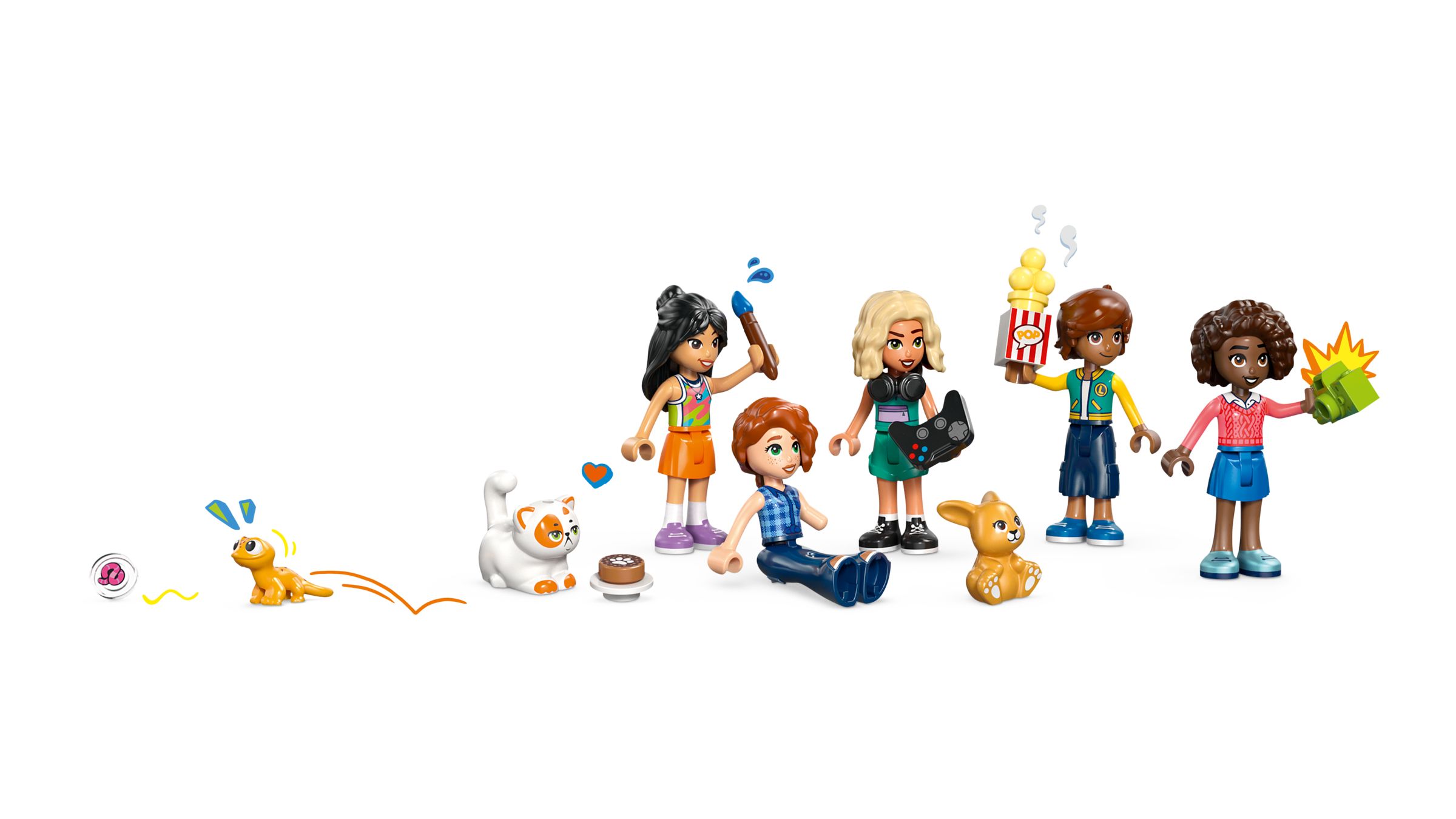 Freu dich auf Abenteuer im Heartlake City Clubhaus der Freunde! Begleite Autumn, Nova, Aliya, Leo und Liann sowie Churro, Honey und Popcorn zum Clubhaus. Probier die Seilrutsche, die Rutsche und die Kletterwand aus. Löse ein Rätsel mit dem Computer oder bereite in der Küche Snacks zu. Die Funktion „Gemeinsam bauen“ in der LEGO Builder App lässt deine Freunde und Geschwister bei dem Spaß mitmachen.