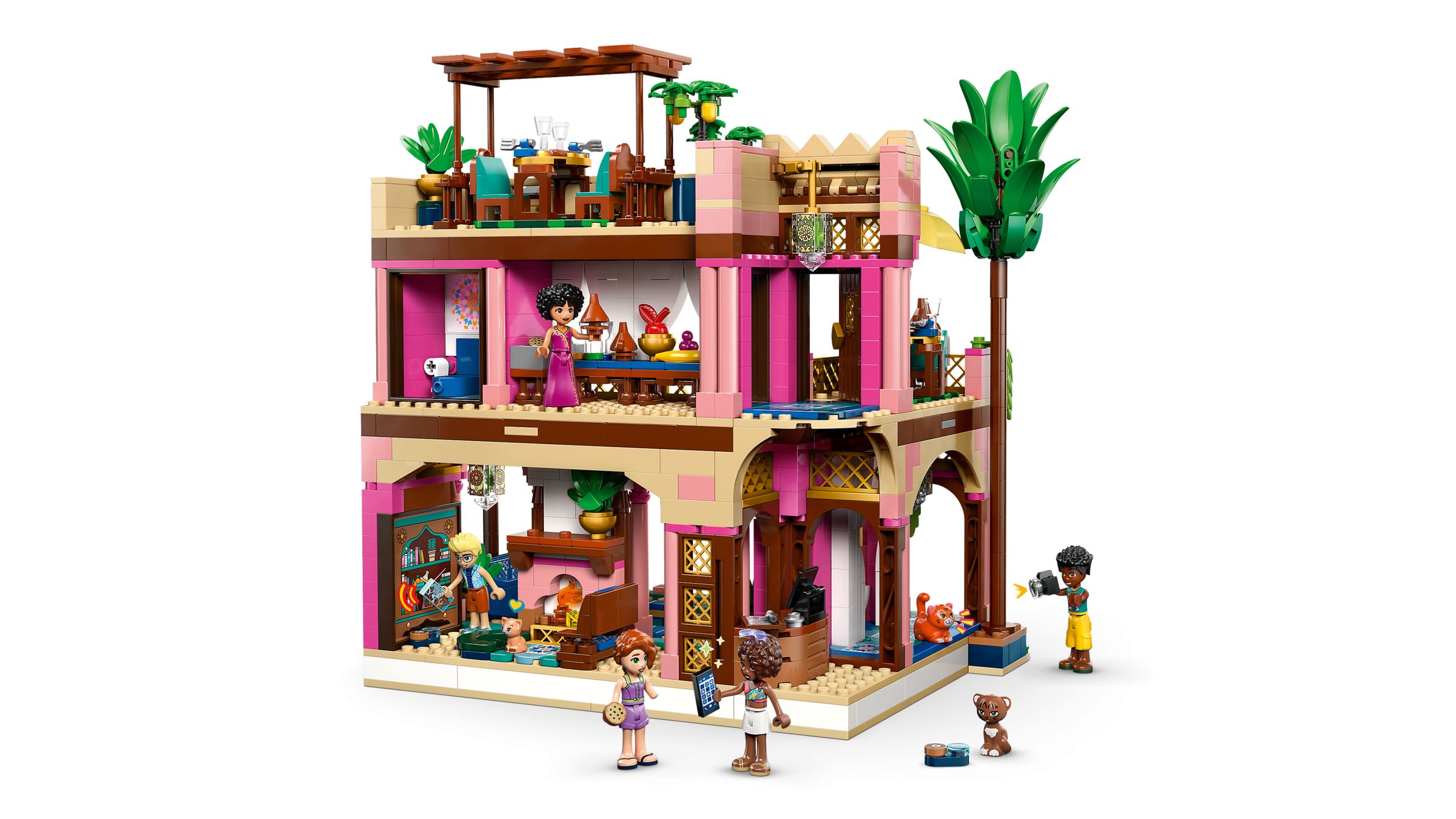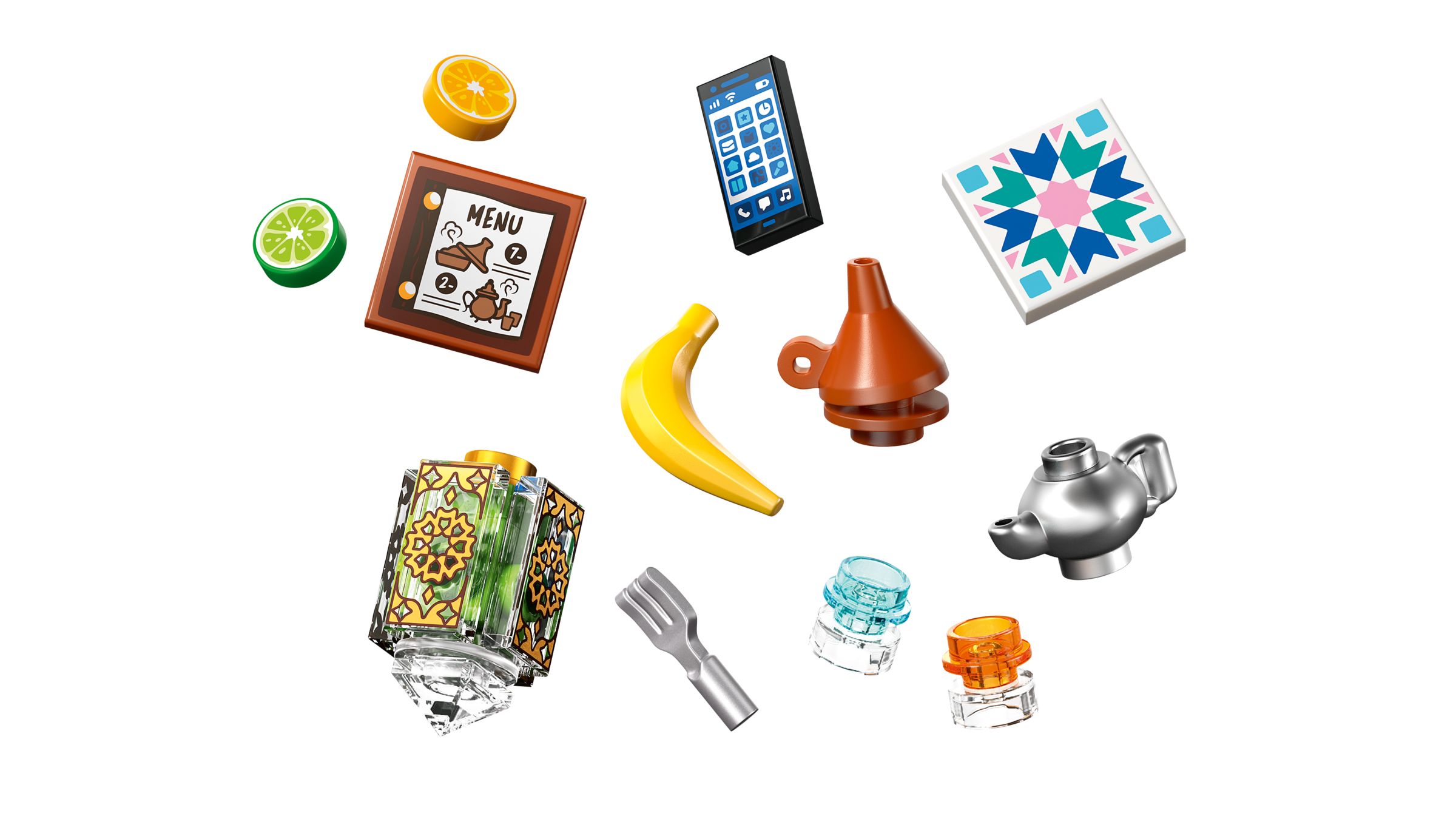 Ein Gartenrestaurant mit Bogengängen, Außenterrasse, Pool und orientalischem Ambiente – Zahra, Aliya, Autumn, Zac und Olly bevölkern das Gebäude samt drei Katzen, die die Gäste empfangen. Das Modell umfasst 1.465 Teile, trägt eine Altersempfehlung ab 12 Jahren und nimmt rund drei bis vier Stunden in Anspruch.