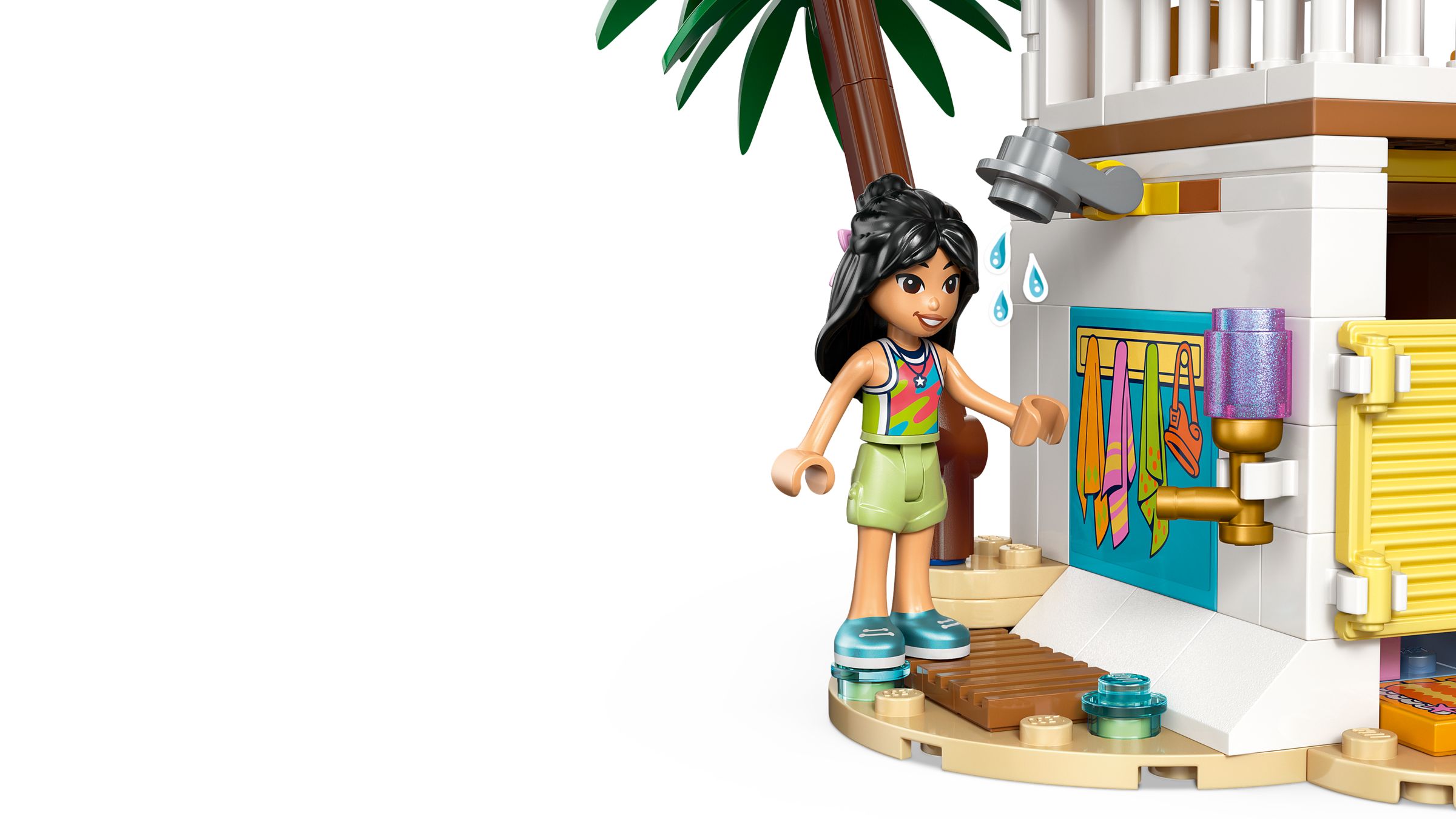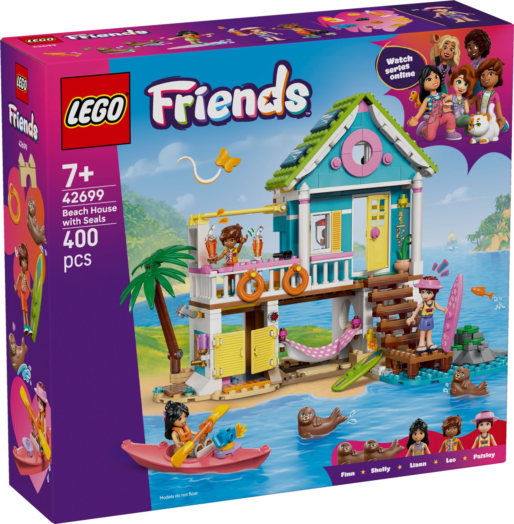 Am Sandstrand warten Robben, ein Kajak, eine Hängematte und vergrabene Schätze auf Leo, Liann und Paisley – das Strandhaus macht Urlaubsabenteuer mit Meerestieren zum Rollenspiel. Der 400-teilige Bausatz für Kinder ab 7 Jahren ist in rund einer Stunde aufgebaut und misst 18 × 28 × 18 cm.