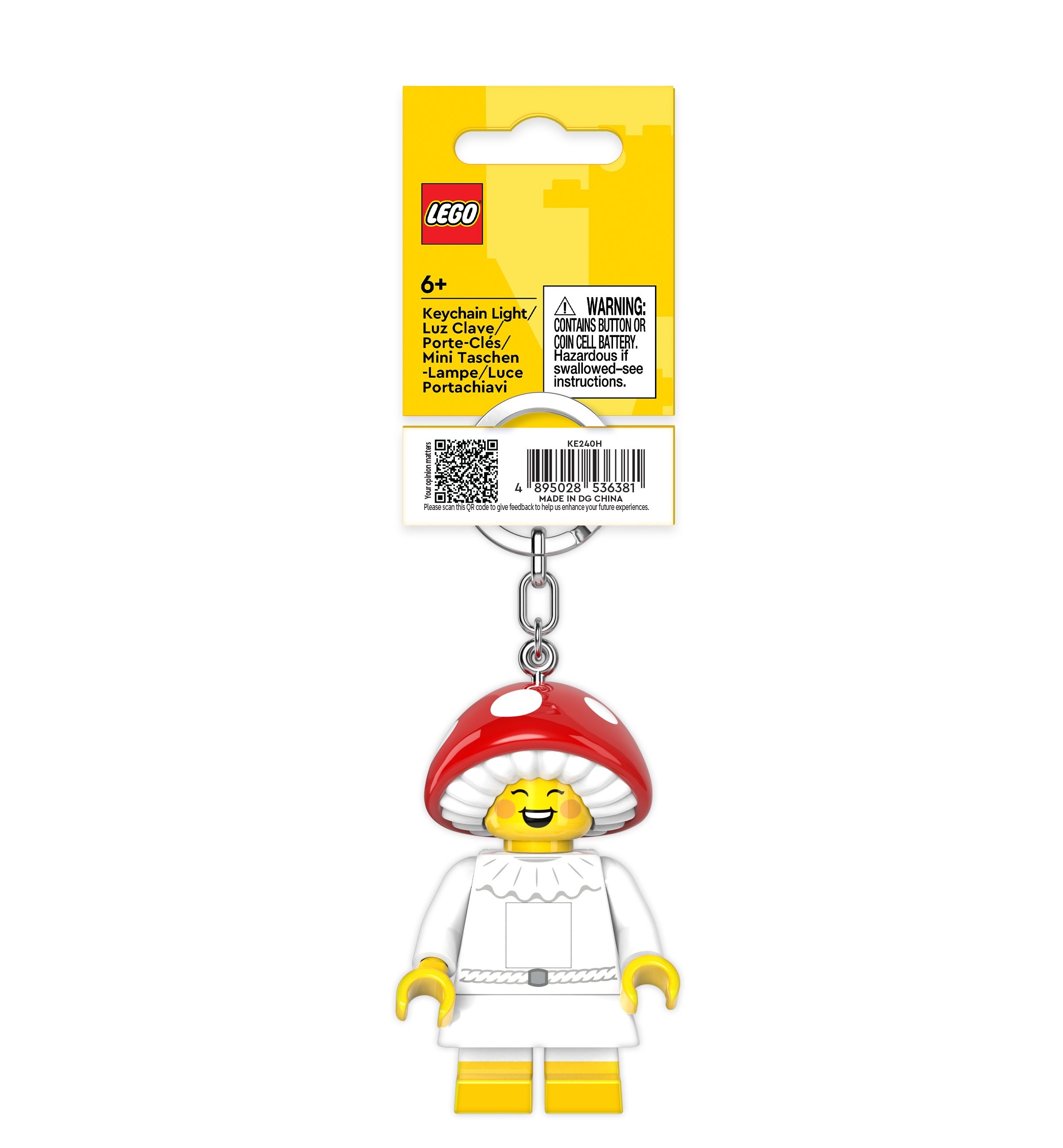 Ein übergroßer Fliegenpilz-Charakter mit beweglichem Kopf, Armen und Beinen leuchtet per Knopfdruck aus beiden Füßen – als Schlüsselanhänger für Tasche, Rucksack oder Schlüsselbund. Das Gear-Accessoire ist für Kinder ab 6 Jahren gedacht, kommt inklusive Batterien und macht sich als Geschenk für LEGO-Fans genauso gut wie als täglicher Begleiter.