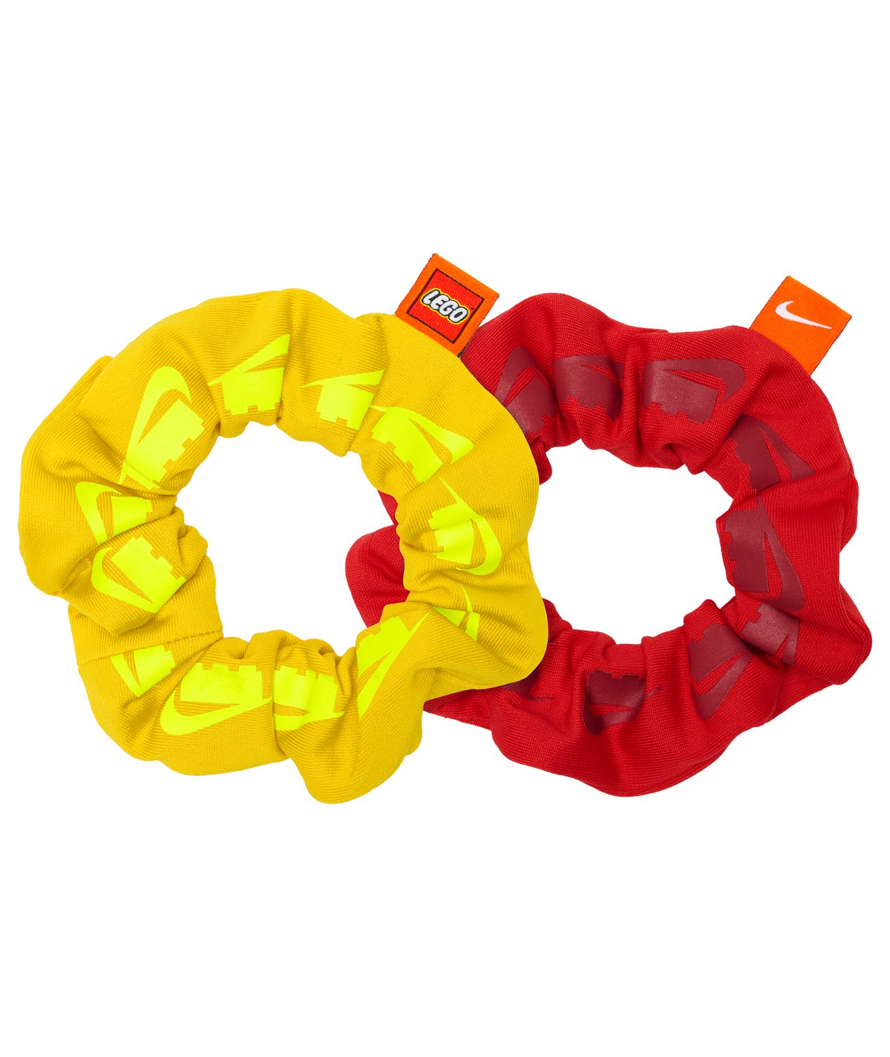 Ein rotes und ein gelbes Haargummi aus Nike Dri-FIT-Material, beide mit dem Nike x LEGO® Collection Markenlogo – dieses Duo macht den Look auf dem Platz und daneben komplett. Das 2er-Pack ist ein sportliches Accessoire für Kinder und Nike-Fans und eignet sich gut als Geburtstags- oder Überraschungsgeschenk.
