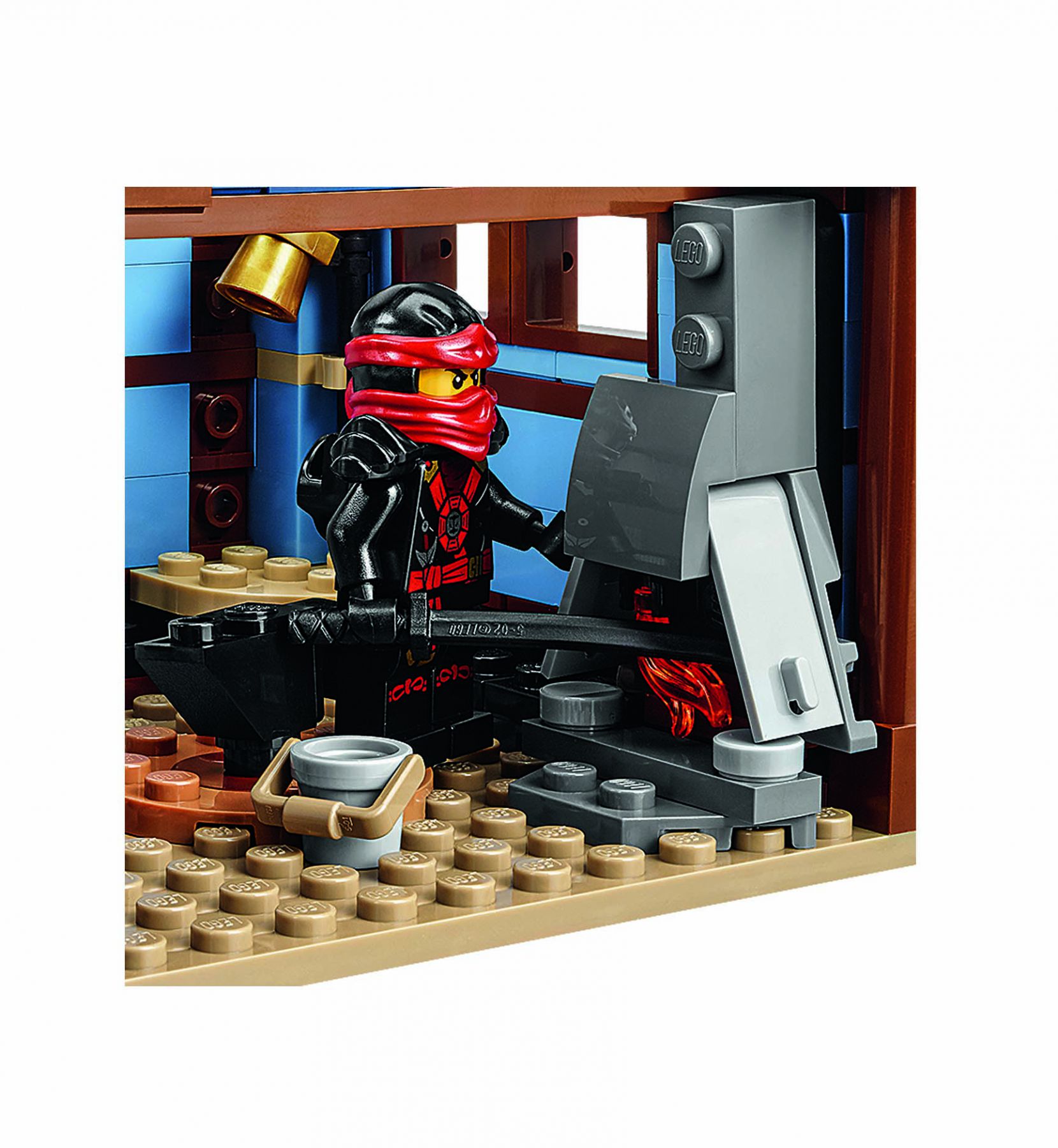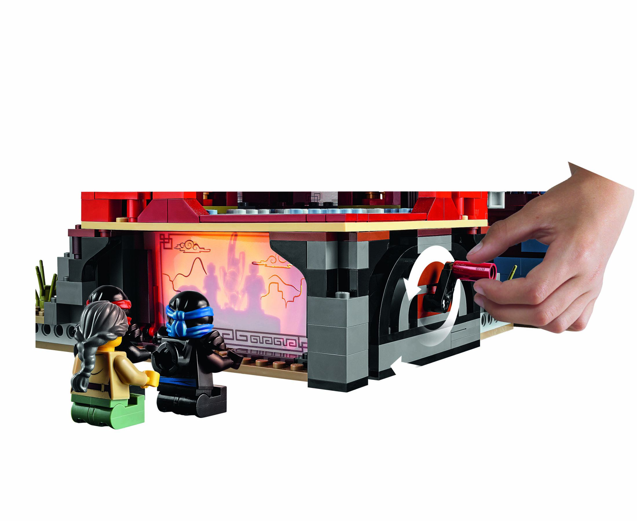 Bereite dich auf das ultimative LEGO® NINJAGO™ Bauerlebnis mit dem majestätischen Tempel des Airjitzu und dem benachbarten Dorf vor. Das detaillierte Tempelmodell verfügt über fantastische architektonische Merkmale wie die im orientalischen Stil dekorierten Fenster und Schiebetüren. Die anspruchsvollen Holz-Wände der Schmiede und die wunderschön geschwungenen Dächer des Schmugglermarktes werden deine LEGO Baufähigkeiten auf die Probe stellen. Zum ersten Mal sind alle Ninja und weitere Schlüsselfiguren in einem einzigen Set enthalten, damit du all deine Lieblings-Abenteuer aus NINJAGO nachspielen kannst. Trinke eine Tasse Tee im Empfangsbereich des Tempels, übe deine Ninja-Fähigkeiten im Trainingsraum oder lasse dich von Wu in der Kunst des Schreibens und Zeichnens unterrichten. Entdecke den Ninja-Gleiter im Raum über der Schmiede, überquere die von den Steindrachen bewachte Brücke und finde versteckte Kostbarkeiten auf dem Schmugglermarkt. Schalte dann das Licht in deinem Zimmer aus und verfolge eine Vorstellung im sich drehenden Schattentheater des Tempels!
