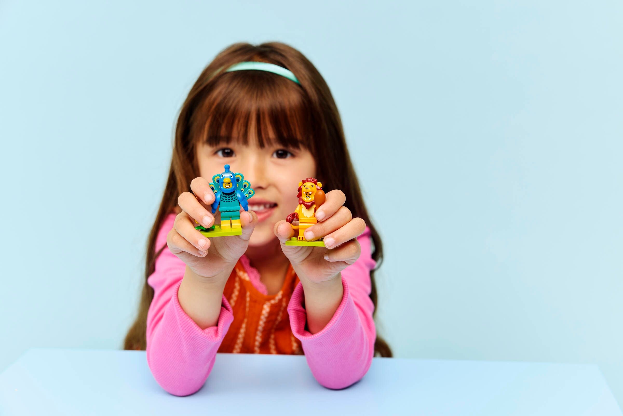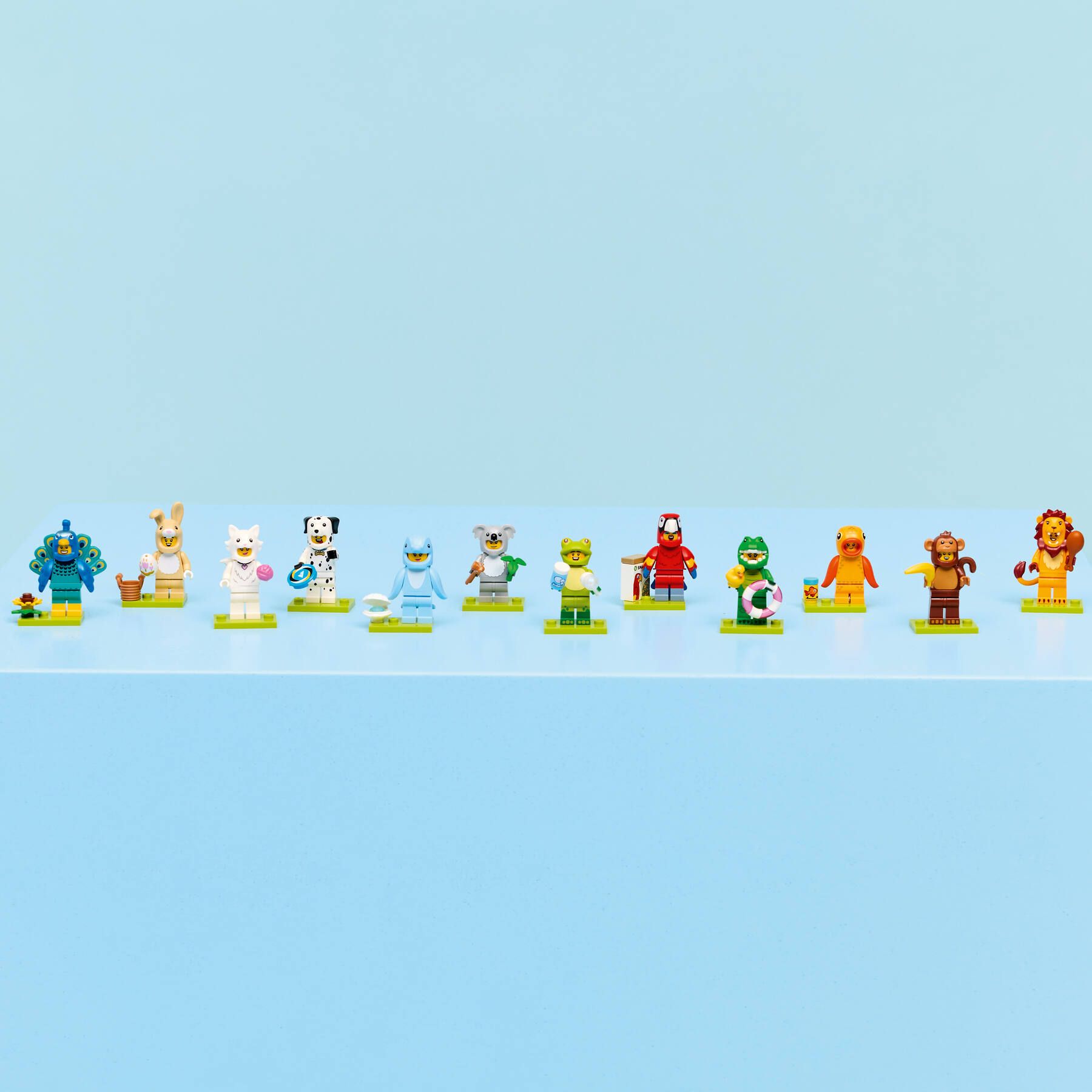 Zwölf Minifiguren in Tierkostümen – vom Krokodil mit Badeente bis zum Goldfisch mit Fischfutter – stecken als Überraschung in der Collectable-Serie 28. Das Set umfasst je 7 Teile pro Box und macht ab 5 Jahren Lust aufs Sammeln, Spielen und Ausstellen.