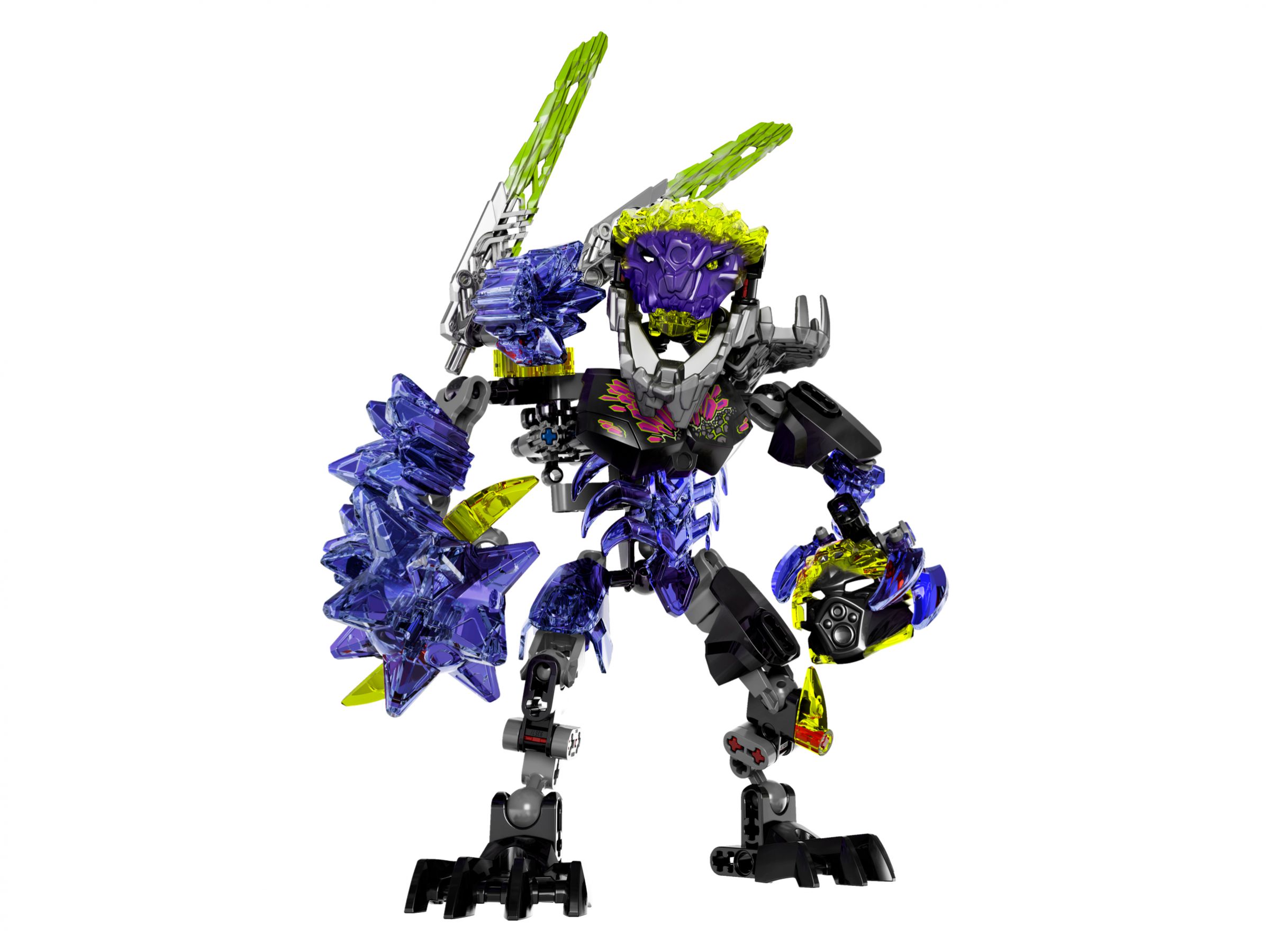 Umarak der Unheilsbringer hat das Beben-Ungeheuer herbeigerufen, damit es ihm hilft, die Toa zu besiegen. Dreh das Rad, um seinen Schlagarm zu aktivieren, und benutze die Kristallfäuste, um auf den Boden zu hämmern und ein Erdbeben auszulösen! Grab dich mit den kräftigen Klauen in den Boden ein, um den Toa aus dem Hinterhalt aufzulauern! Verbreite Unruhe in den Dörfern von Okoto, aber hüte dich vor den LEGO® BIONICLE® Helden und deren Schwingern, denn wenn diese Hiebe treffen sollten, wird die Maske des Beben-Ungeheuers abgesprengt!