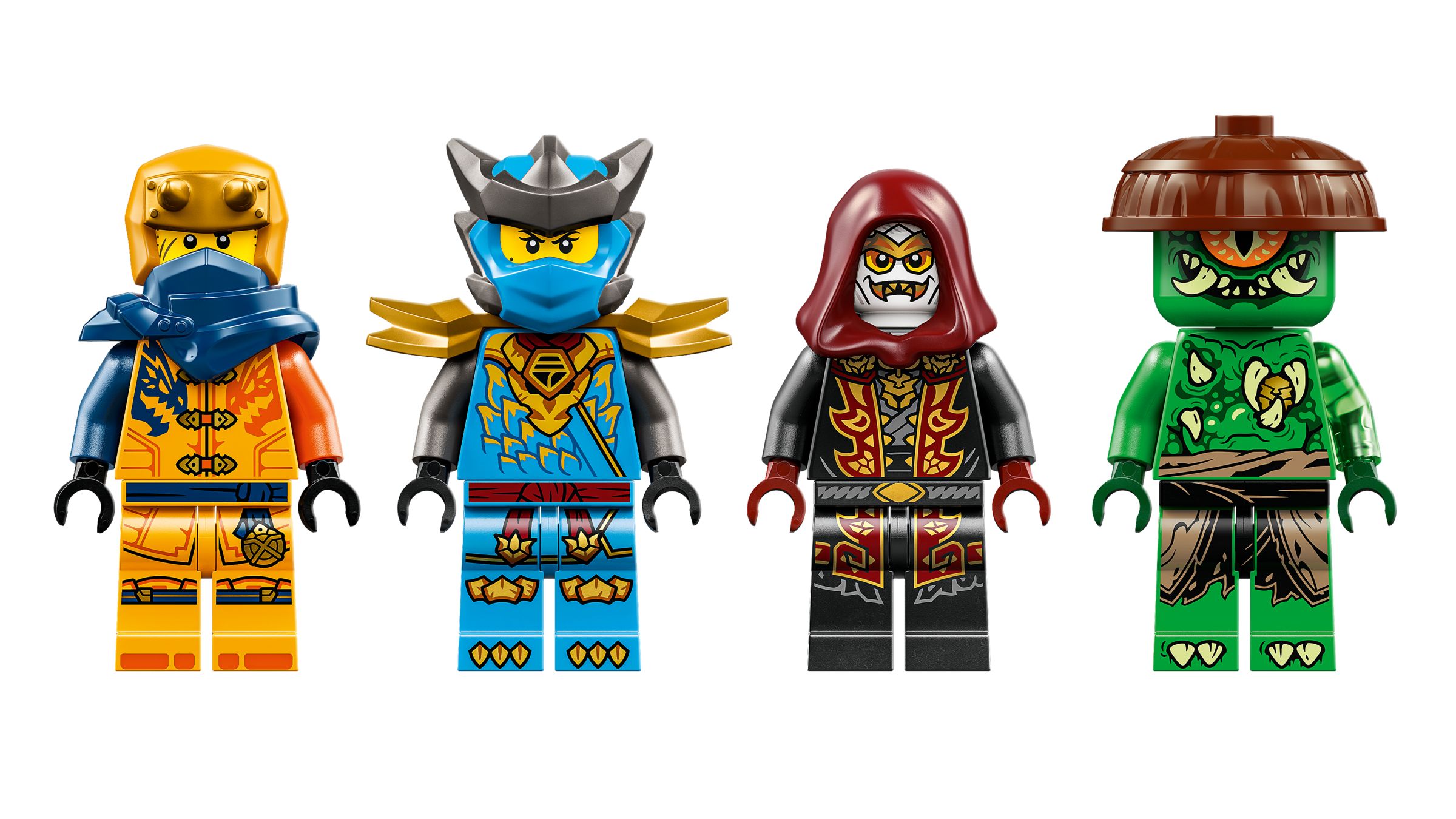 Riyu stürzt sich aus der Luft auf das Mutationsmonster und den Loyalisten – bewaffnet mit großem Schwert und Wurfstern, während seine Flügel, Klauen, Arme und der Schwanz vollständig beweglich sind. Die 347 Teile sind in rund einer Stunde zusammengebaut; das Modell misst 34 cm in Länge und Breite und kommt mit vier Minifiguren – darunter Arin und Drachen-Form-Nya – für Kinder ab 7 Jahren.