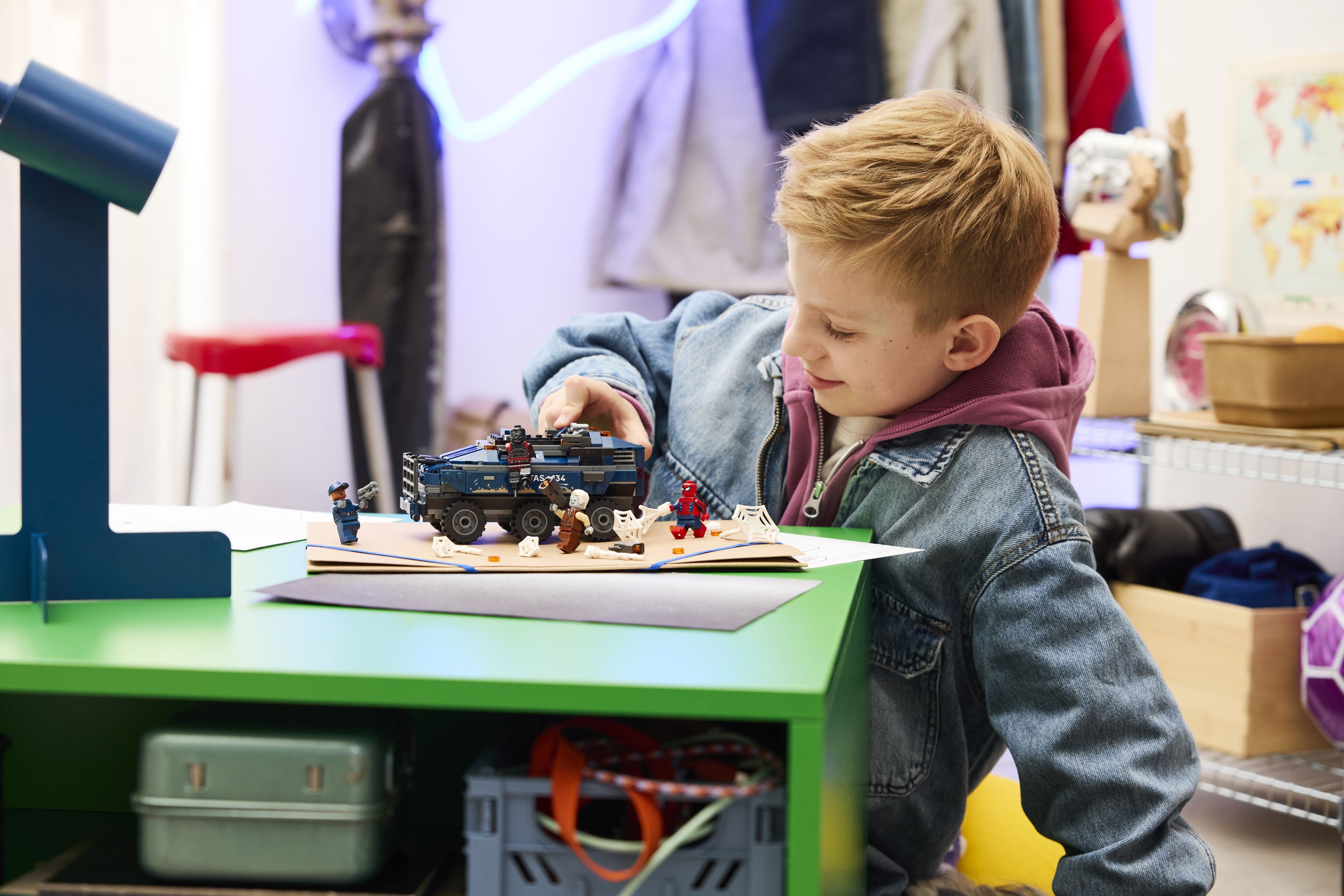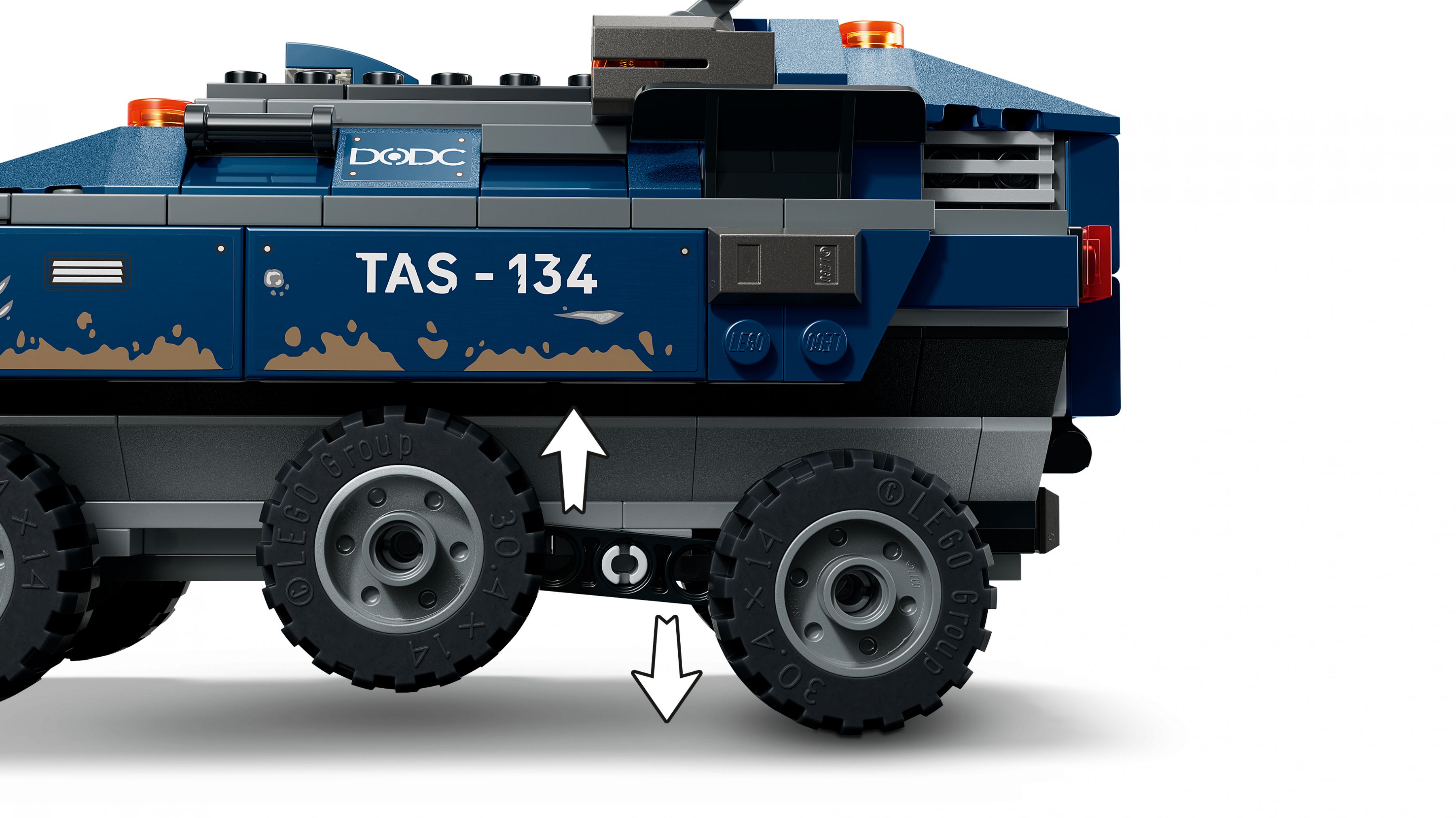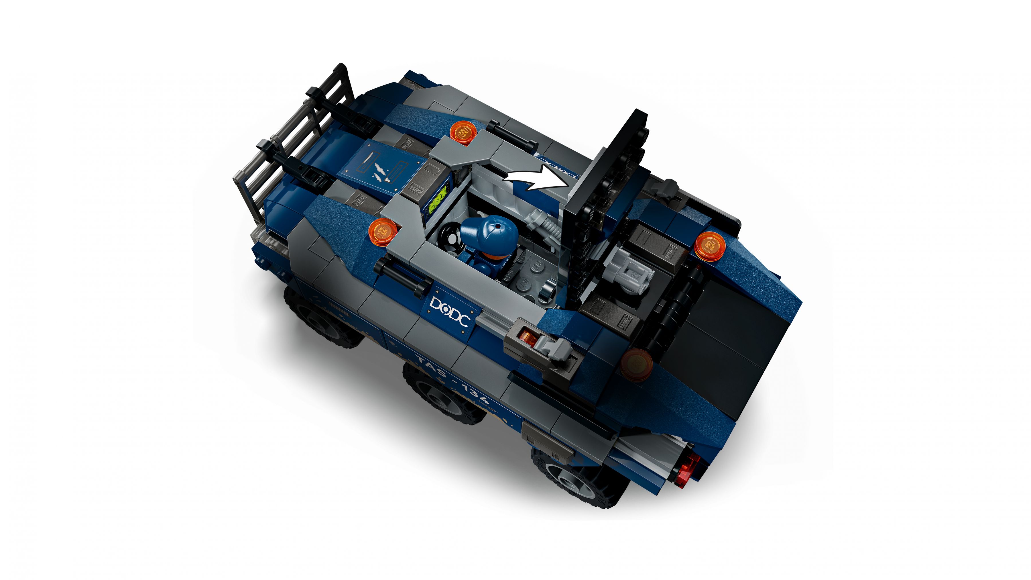 Ein sechsrädriger DODC-Gefängnistransporter mit aufklappbarer Hecktür, Bordgefängnis und Federung für holpriges Gelände bildet das Herzstück dieser Verfolgungsjagd aus Spider-Man: Brand New Day. Der Bausatz umfasst 367 Teile, vier Minifiguren – darunter Spider-Man, Tombstone und Tarantula – und ist ab 8 Jahren in rund einer Stunde aufgebaut.