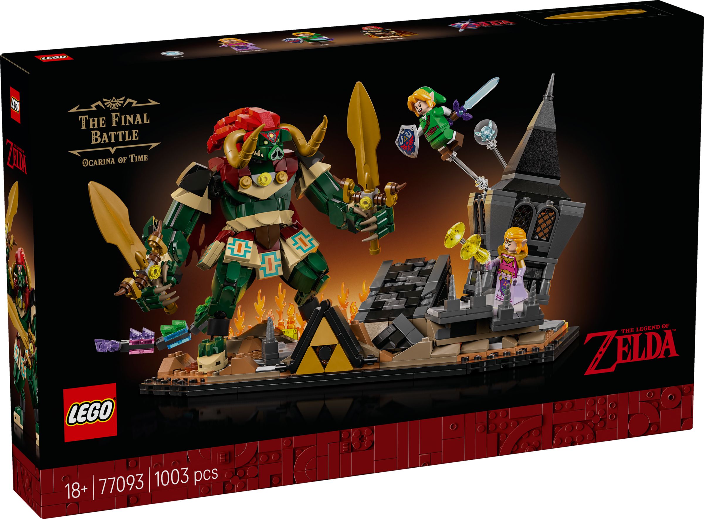 Das LEGO Set Ocarina of Time™ – Das Letzte Gefecht mit der LEGO-Nummer 77093 Ocarina of Time™ – The Final Battle gehört zur Themenreihe LEGO GAMING. Altersempfehlung: 18+ Jahre. Dieser LEGO Baukasten ist 2026 erschienen und wird vermutlich bis 2027 im Programm bleiben. Das Set enthält 3 Minifiguren, von denen 2 exklusiv nur in diesem Set enthalten sind. Das Modell besteht aus 1003 Teilen. Die Bauzeit beträgt ca. 2 bis 3 Stunden. Die Teile des Sets ohne Anleitung und Box wiegen ca. 713 Gramm. Die LEGO-Box wiegt insgesamt ca. 1.167 Gramm. Die unverbindliche Preisempfehlung (UVP) liegt bei 119,99 €.